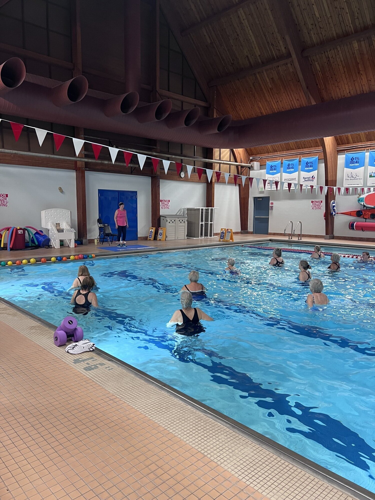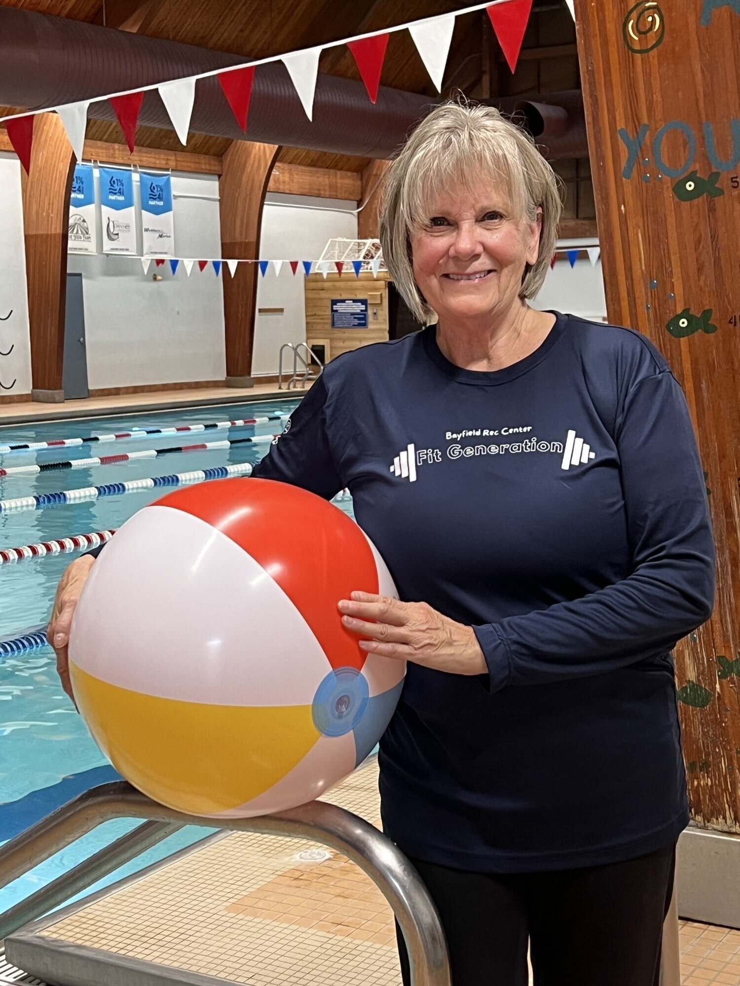 Wendy has been teaching water fitness for over 34 years, and this year officially retired from her role. After teaching and being certified in the Twin Cities in the early 90’s Wendy came back to Bayfield with a wealth of knowledge and began teaching at the Bayfield Rec Center in 2015. At the time, classes were 5-8 people and known as “walk and talk”. As Wendy got involved with substituting, and then eventually teaching on a regular basis, the class began to evolve. No longer just a walk and talk, Wendy poured her heart into playlists and choreography and full body workouts that are fun, motivating, and now the standard.