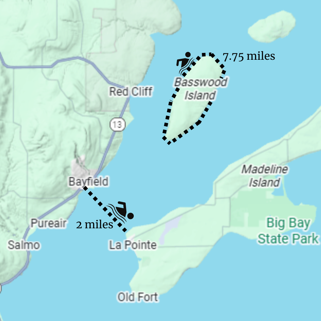 December Swim Challenges: Beginner - 2 miles from Bayfield to La Pointe Advanced - 7.75 miles around Basswood Island