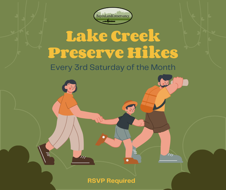 Mark your calendars for our monthly guided hike at Lake Creek Preserve on Saturday, November 15th! Discover diverse ecosystems and unique terrains on this guided, moderately easy ~1 mile loop through Lake Creek Preserve!