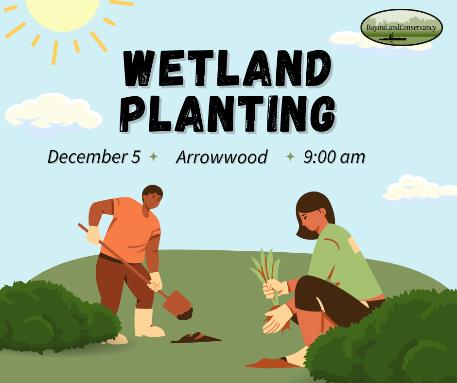 Join us on Friday, December 5th to restore the native habitat at Arrowwood Preserve! We will be planting various native species in our bottomland forests and need your help. Get ready to have fun, make a difference, and leave a little muddy as we work together to improve the ecosystem!