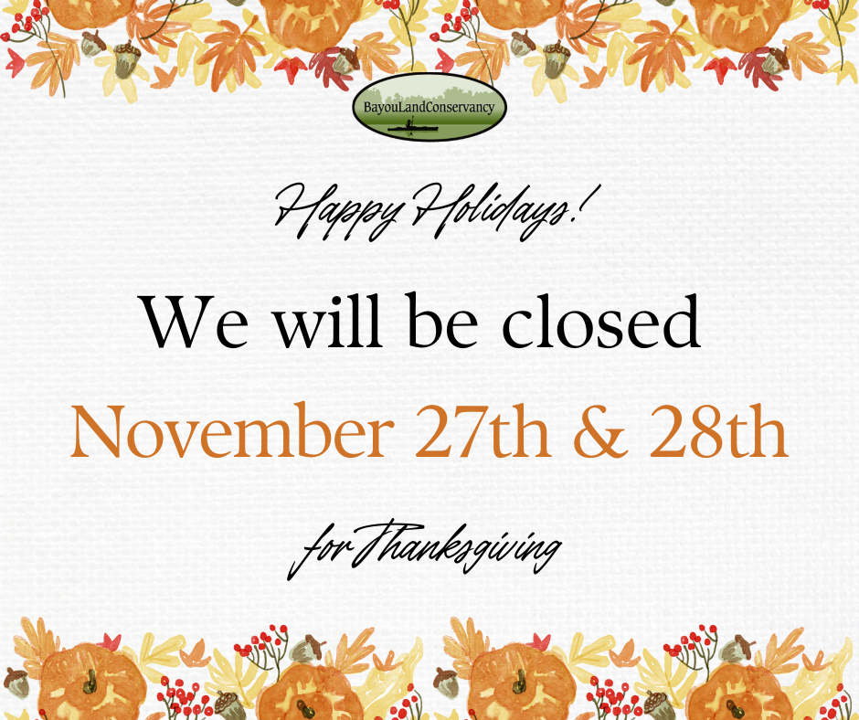 Thanksgiving has always been my favorite holiday. A day to gather with family, friends, and community and celebrate the power of gratitude. I truly believe that what we focus on increases, and I have seen that happen at Bayou Land Conservancy.