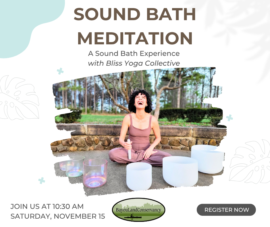 Join us for Sound Bath Meditation with Bliss Yoga Collective at Arrowwood Preserve on Saturday, November 15th!