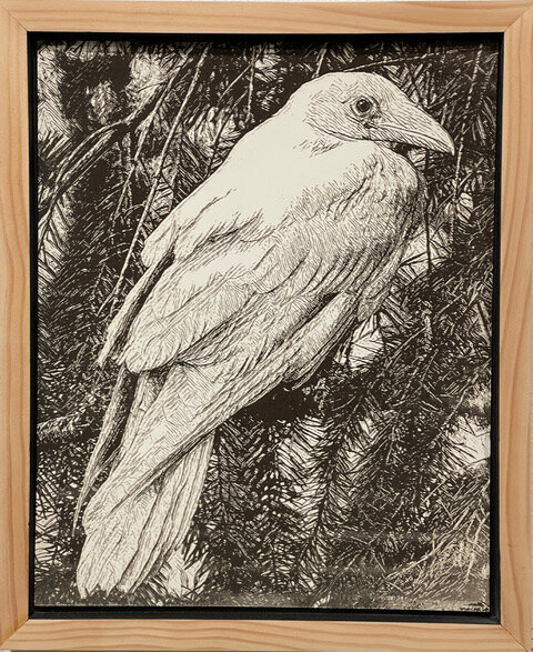 "White Raven” by Dave Somers Engraved clay - 12" x 16"