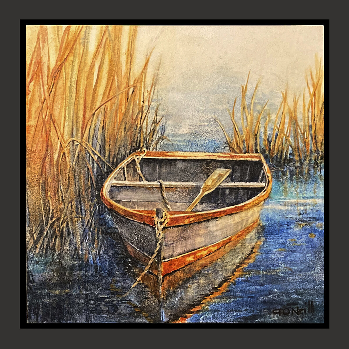 "Among the Rushes" by Ginny O'Neill Watercolor on panel - 12" x 12"
