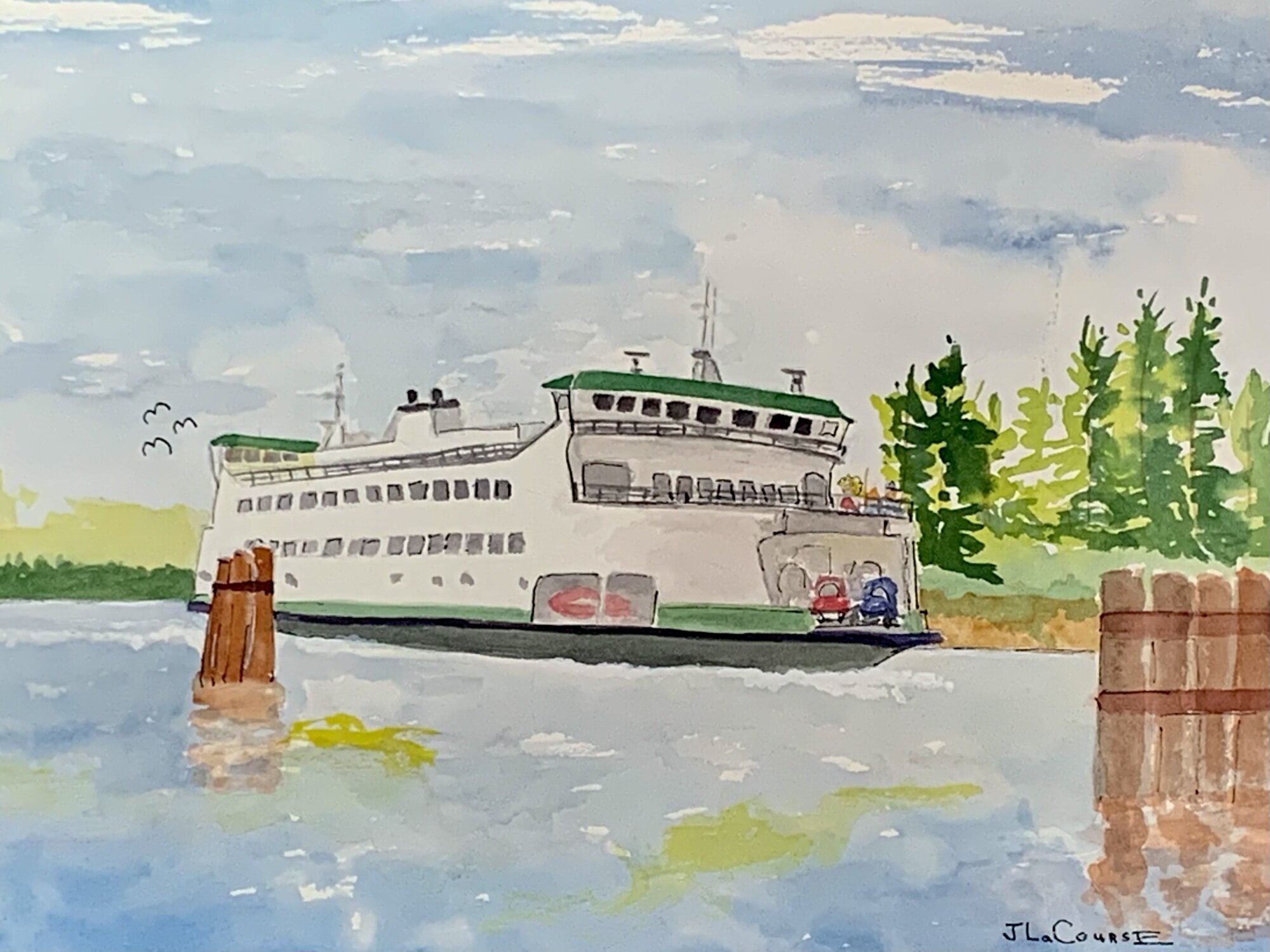 “MV Kittitas, Coming In” by Judy LaCourse Watercolor - 16"x 20"