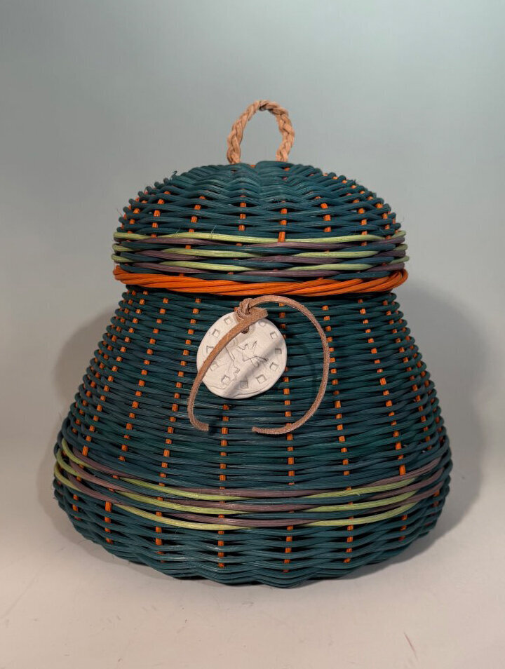 Hidden Treasure Basket by Regina Kastler Hand dyed and Hand Woven - Approx 9 1/2" x 8"