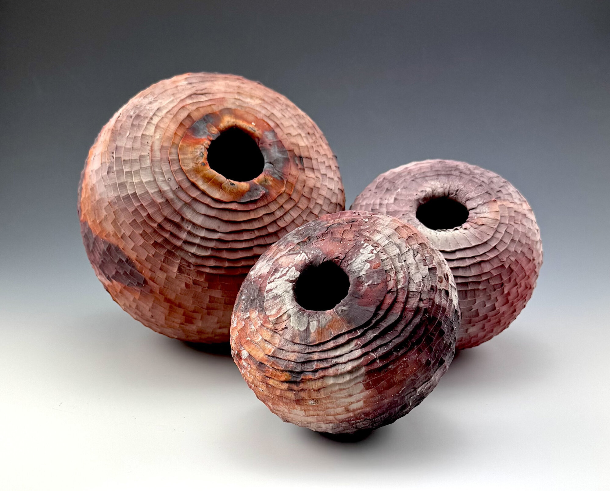 My work focuses on the transformative nature of fire. The process of surrendering pieces directly into the flame creates a more intimate relationship with the work because while it requires specific time and attention it also demands a leap of faith, the complete release of expectations. I believe that the destructive nature of fire brings both a sense of strength and fragility to the pieces. Read More >>