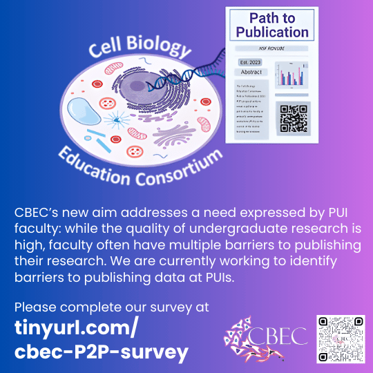 The CBEC has developed a path to publication pipeline to assist (and financially support) undergraduate faculty in publishing their research in the journal MicroPublication Biology. Check out our resources on the QUBES hub.