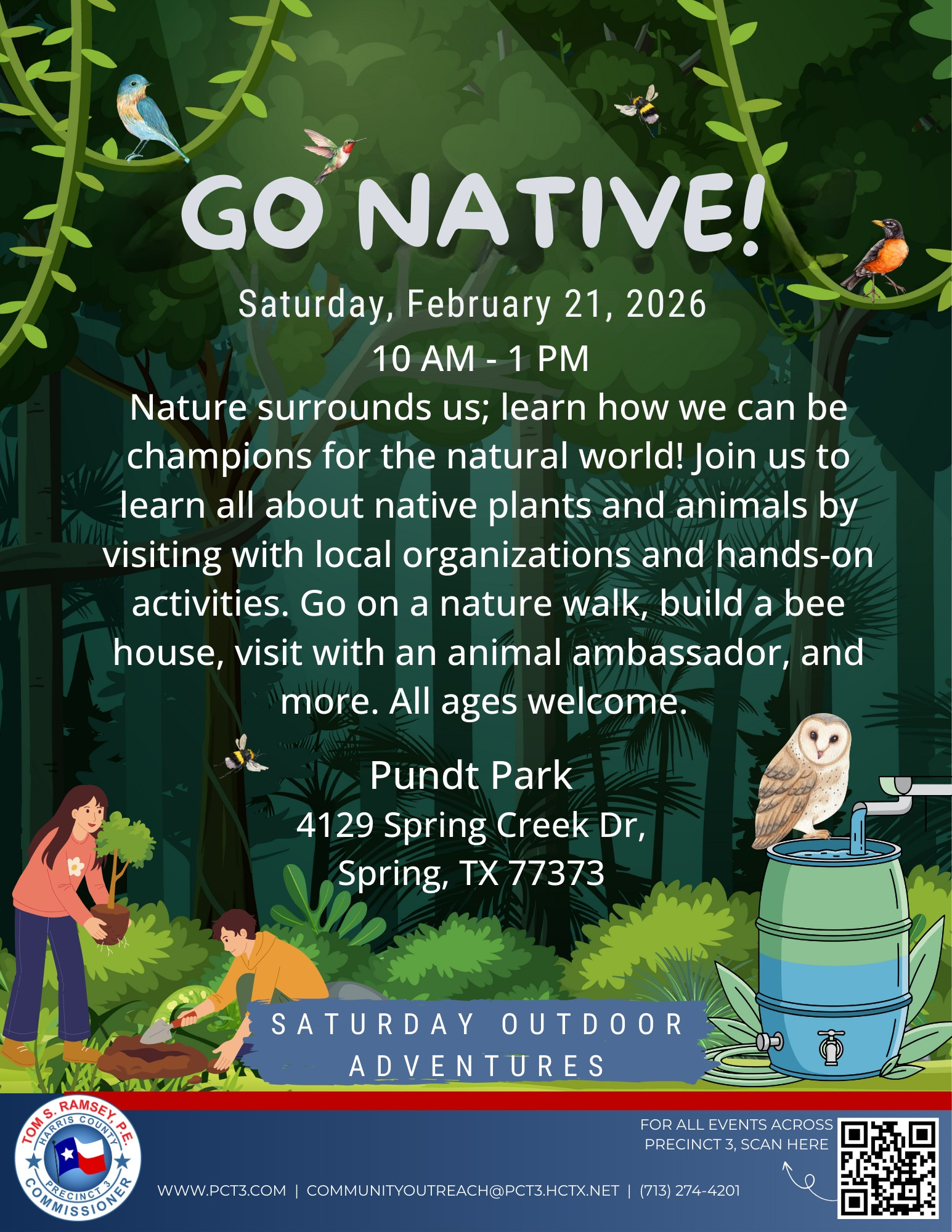 Join us at Pundt Park on Saturday, February 21st at 10 am for a Saturday Outdoor Adventure with Harris County Precinct 3!