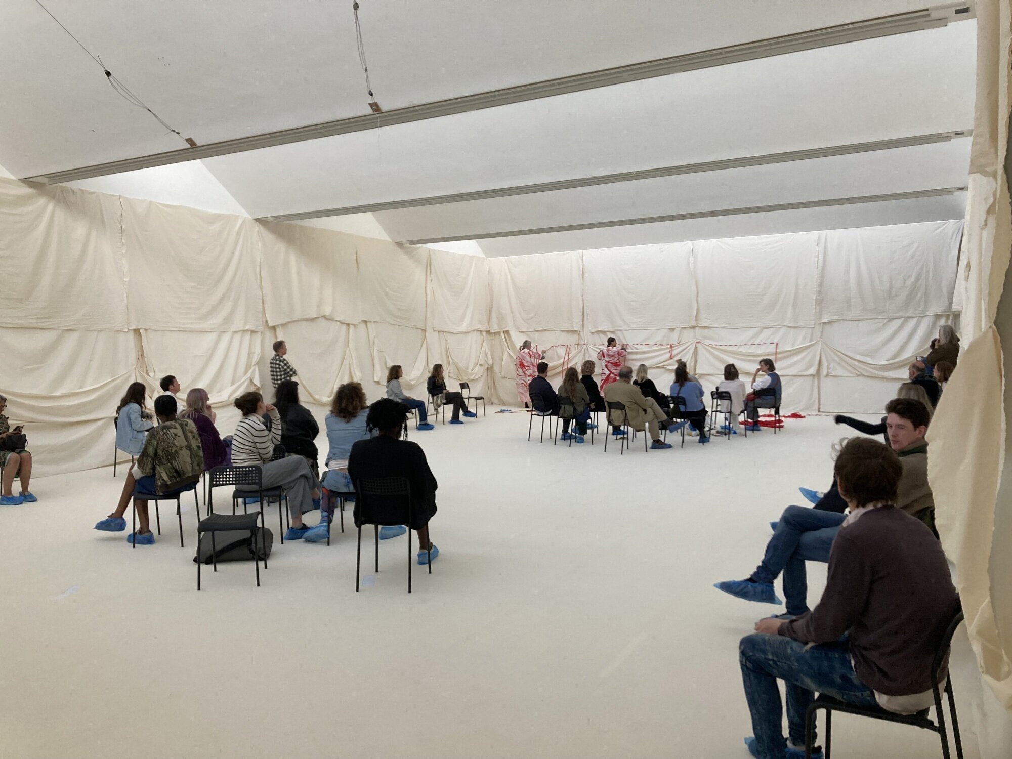Unfolding as a monumental installation that spills across NCA's two gallery spaces, Le Bas' work transforms the building into a tapestry of interconnected stories. A red threat runs like a pulse through the exhibition, linking both gallery spaces while serving as a metaphor for fate, connection and defiance.