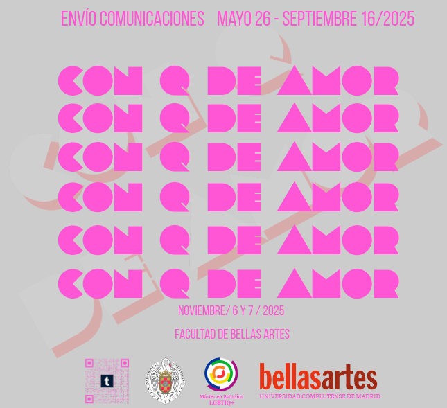 [amor] "En virtud del alto tributo que las amantes deben pagar de sí mismas para utilizar esta palabra, no es ya muy empleada. Sin embargo, no todas las amantes han renunciado al amor" (Monique Wittig y Sande Zeig, B orrador para un diccionario de las amantes). Con esta sugerente cita abre el CFP del congreso Con Q de Amor organizado por el Máster en Estudios LGBTIQ+ de la Universidad Complutense de Madrid. Desde el 26 de mayo hasta el 16 de septiembre estarán recibiendo propuestas en todo tipo de formatos (comunicaciones, talleres, presentaciones performativas, textos poéticos, visuales, fanzines, etc.) que, con el hilo conductor del amor con Q, nos inviten a pensar, repensar y habitar la academia en la que estamos y/o imaginar aquella en la que nos gustaría existir. El congreso tendrá lugar el 6 y 7 de noviembre en la Facultad de Bellas Artes (UCM). Echadle un vistazo al CFP porque es sencillamente delicioso.