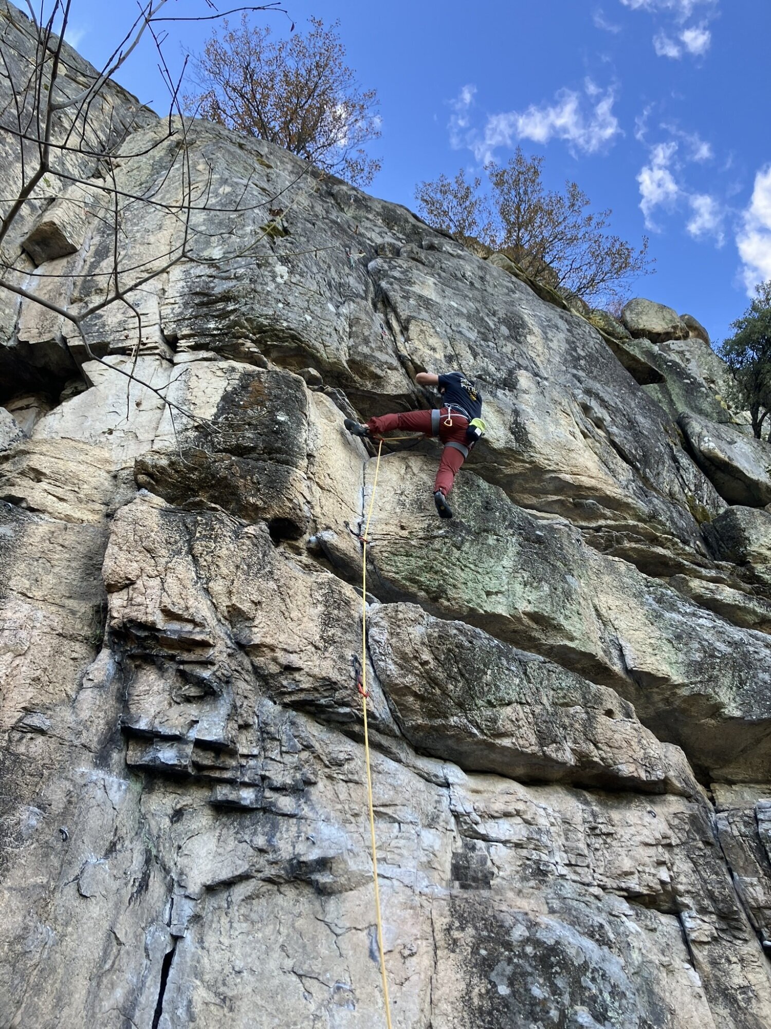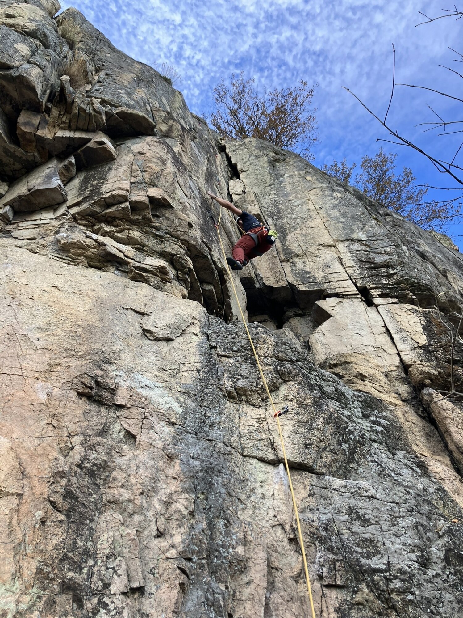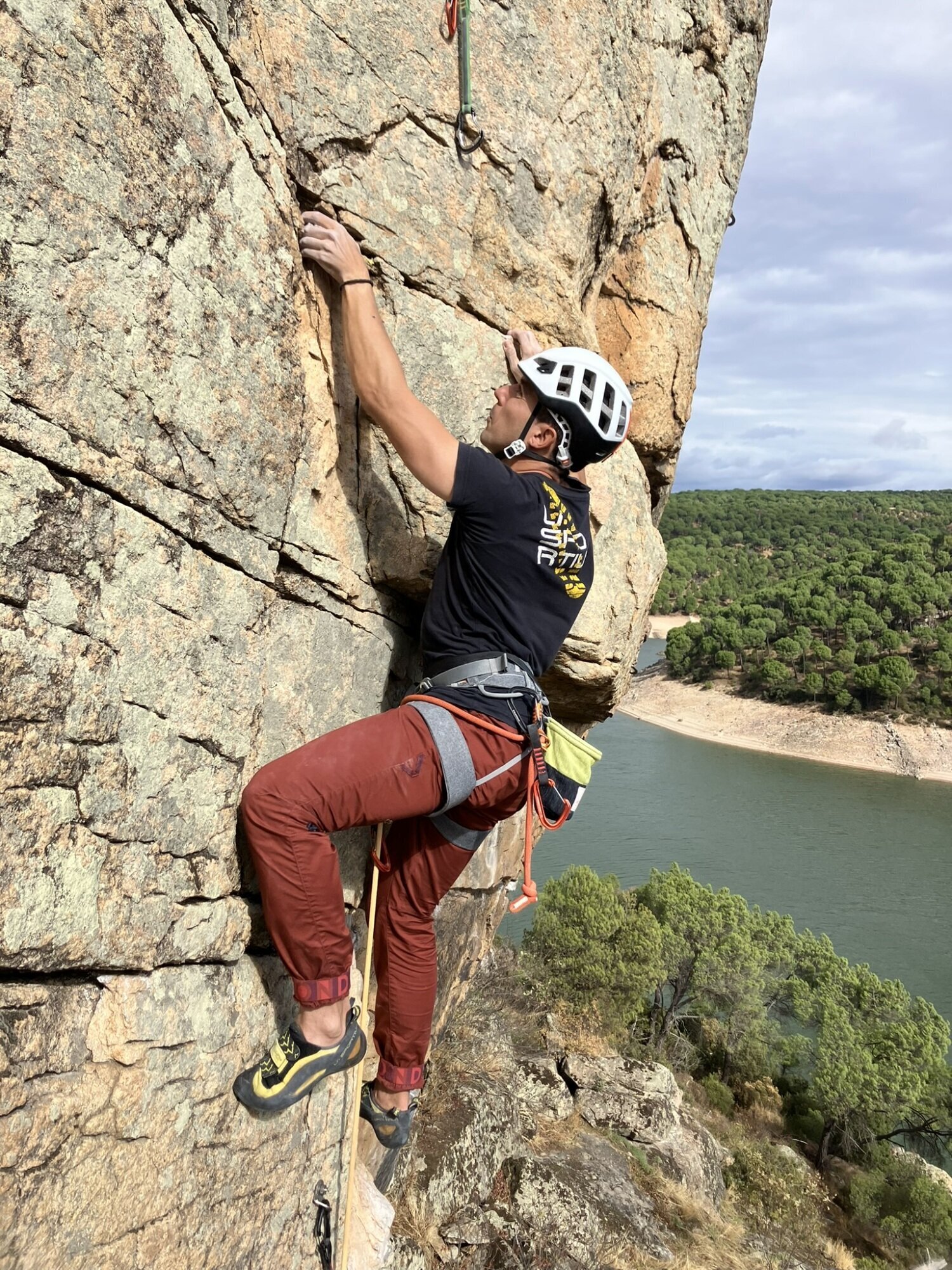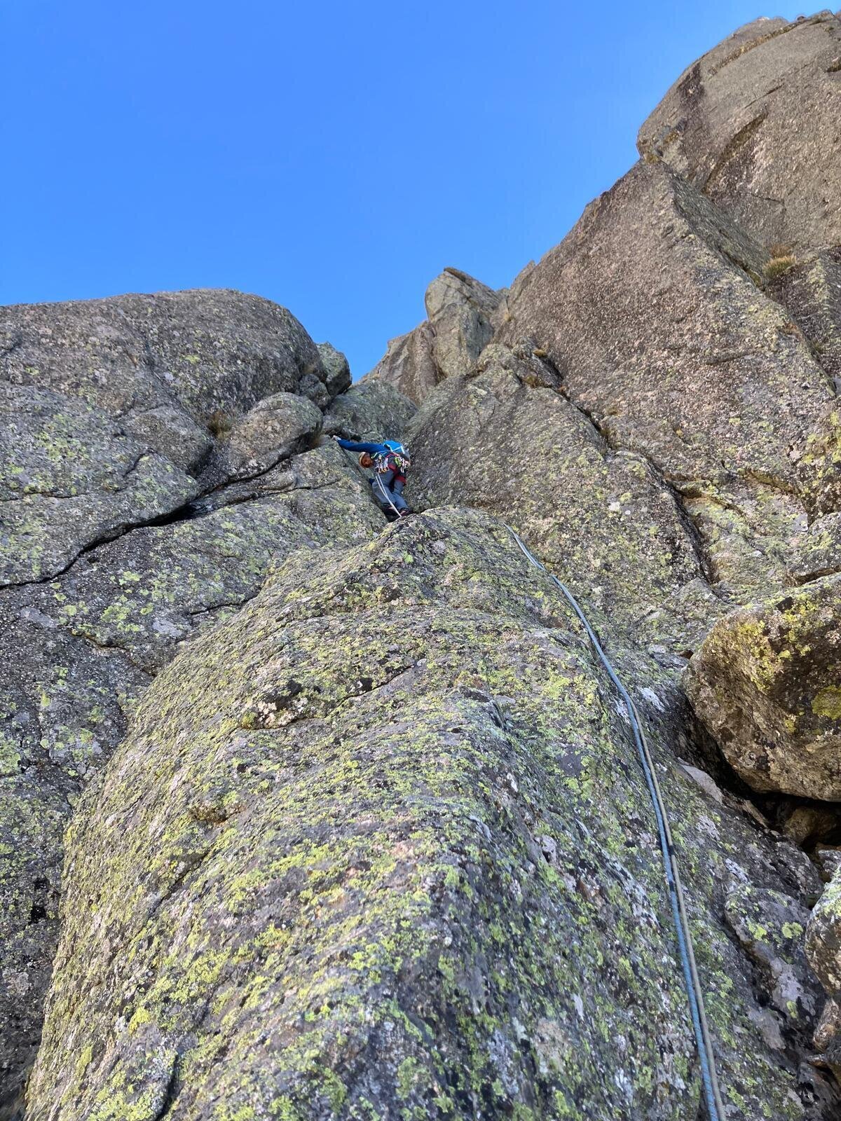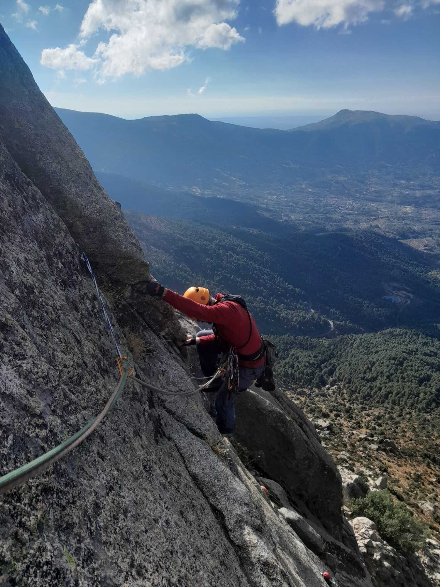 ACTIVIDADES REALIZADAS EN EL MES DE OCTUBRE GARGANTA DE NAVAMEDIANA Salimos a las 8:00 de la plaza de toros para recoger a Yolanda en la Venta Rasquilla y a Ignacio en Hoyos. Éramos 7 en total, de los 16 que en un principio se habían apuntado, algunos de baja por motivos personales y otros sin dar explicación alguna, cosa que lamentamos por haberles estado esperando. La subida al Puerto del Pico nos acompañó con una densa niebla que, gracias a las balizas, resultó menos desagradable. Iniciamos la ruta a las 9:30 aproximadamente, desde una altura de 1.130 m. Comienza por una zona cementada de unos 1.000 m que acaba en una portera, donde empieza un sendero bien marcado y recientemente desbrozado, bajo la sombra de los robles. Se pasa por un letrero que anuncia la Fuente de las Quebradas, que por más que buscamos no logramos encontrar. Más arriba, la garganta se abre y llegamos al refugio de Quemaculos (1.580 m), muy bien cuidado, donde hicimos una pequeña parada. Continuamos hasta cerca de Las Hoyuelas, donde los alisos dan sombra a la garganta, que por cierto va escasa de agua (1.840 m). Allí paramos y, viendo que por abajo venían unas nubes poco agraciadas, decidimos no continuar, ya que para llegar al Callejón de los Lobos quedaba la parte más dura por su inclinación. Pese a nuestro paso ligero en la bajada y viendo las nubes cada vez más oscuras, al final decidimos pertrecharnos con chubasqueros, ponchos y chaquetas que, pese a la pequeña lluvia, nos salvaron de calarnos. El recorrido fue en su mayor parte con sol, sin viento y, como siempre, sumamente agradable por la compañía. SENDERISMO El pasado sábado 11 de octubre, 26 personas dimos un breve pero hermosísimo paseo desde El Arenal hasta el Charco de los Nogales. Empezamos descendiendo para encontrar el cauce del río Arenal, debajo del molino, en el arboreto, y luego ascendimos junto al cauce, transitando un precioso bosque de galería y junto a cultivos de nogales, castaños y cerezos hasta la gran balsa de reserva de agua de El Arenal. Tras descansar y reponer energías, descendimos a contemplar el imponente Charco de los Nogales, para luego continuar el descenso por la suave margen derecha. El día fue soleado y el ambiente, de cordialidad y alborozo. Lo pasamos muy bien. ESCALADA En la Chaparra, Ángel Rituerto, Luis Fernando y Alejandro Muñoz: vía Cipri (y sellar el bloque triangular). En el Risco del Yelmo, Ángel Rituerto y Alejandro Muñoz: vía del Diedro. Alejandro Muñoz y Emiliano, en la Albujea, vía de las lajas. David Gómez, José Juan Pérez Preciado y Gonzalo Delgado escalamos en La Cabrera la vía Integral de Chamberí, en el Risco del Fraile. La familia Delgado Vinuesa estuvimos escalando deportiva en Ulaca. 5 de octubre: Fernando Pinar y Chema Mancebo, en Las Berroqueras (Galayos): Vía de las Tormentas. 11 de octubre: Daniel y Chema Mancebo estuvieron en el Torozo, repitiendo la clásica Gollum, con Chema en los largos 1, 3 y 5 (acerando el paso raro) y Daniel en los largos 2 y 4. 18 de octubre: De nuevo Daniel y Chema Mancebo , en Galayos, recorrieron el cresterío de la Punta María Luisa (por la Rivas-Acuña) hasta el Torreón (final por la Sur clásica), alternando los largos, subiendo también a la punta Innominada por la vía de los polinizadores. 26 de octubre: Mario Sánchez, Daniel y Chema Mancebo se desplazaron a San Martín de Valdeiglesias. En el Sector Norte escalaron las vías Encuentros en la Tercera Fase (6b) y El Vergel (6b), y en el Sector Ecológico, Subrealismo Laboral (6c).
