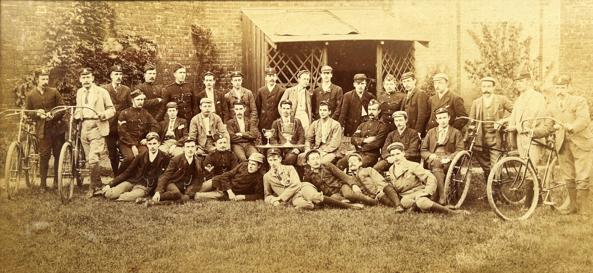 This snap shows Colchester Excelsior Cycling Club posing for a shot in 1892 when the club was three years old. The location was the garden of the Fleece Hotel on Head Street, roughly where the Halifax bank is now.