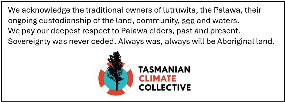 We now have the opportunity to help the Tasmanian parliament understand just how important it is to improve the Tas Climate Change Act, so that it leads to actual emissions reduction.